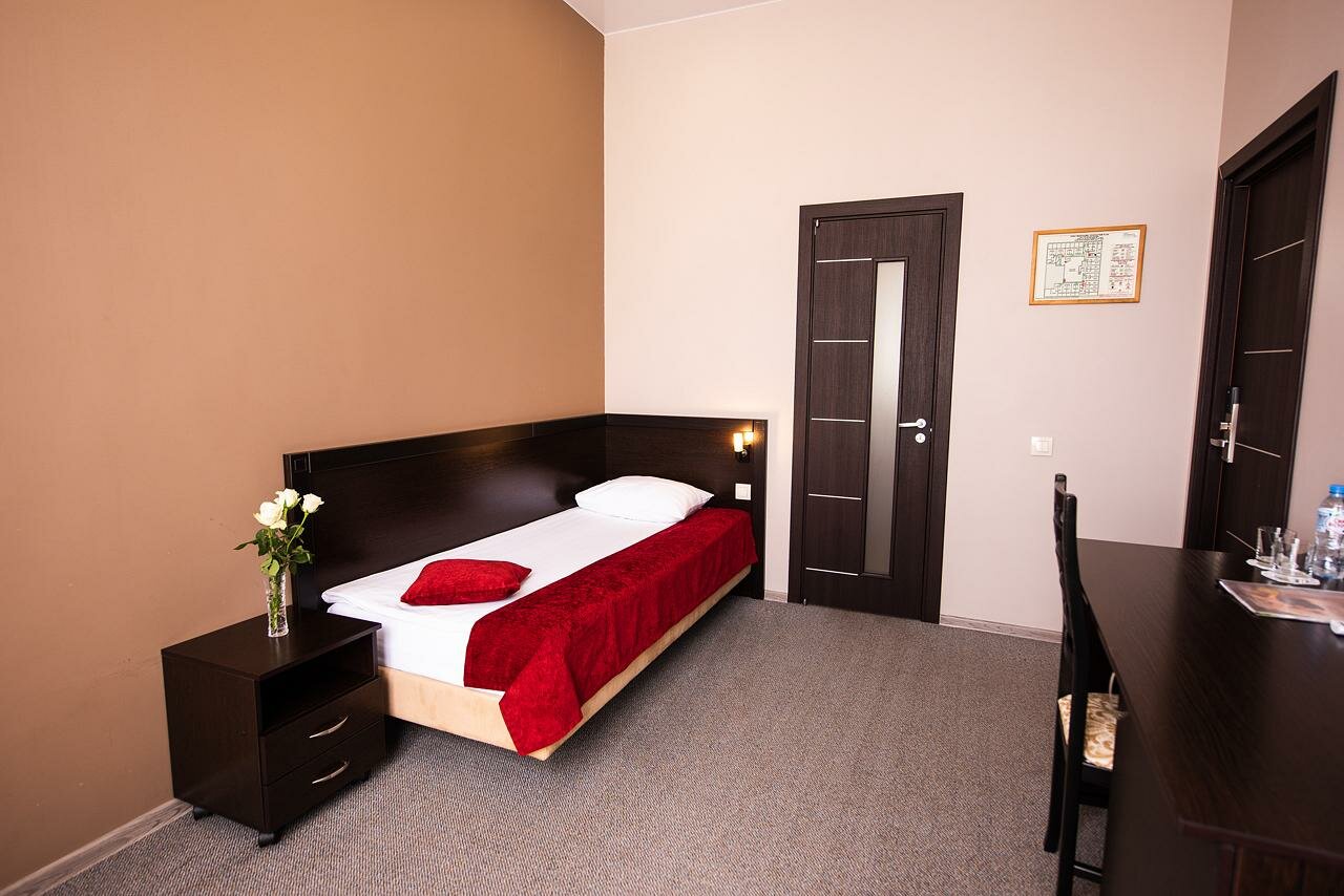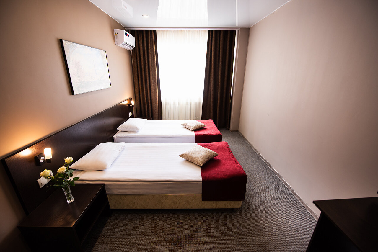 Небольшие, чистые и уютные номера, рекомендую кухню. В стоимость включен сытный завтрак на любой вкус. Лучшая гостиница в Курске. Приезжаем сюда из Москвы второй год подряд