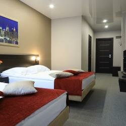 Остановились в этой гостинице в середине марта. В номерах тепло, уютно, чисто. Поразил размер кроватей — в двухместном номере две полноценные двухспальные кровати. На окнах хорошие плотные шторы — если закрыть шторы днем, то дневного света в комнате нет. Завтрак включен в стоимость, кормили вкусно. В общем нам очень понравилось, рекомендуем это место!