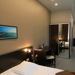 Номер чистый, уютный, ремонт свежий. В номере есть всё необходимое. Тихо. Персонал вежливый, учли всё пожелания и оперативно реагировали на все просьбы. Завтрак — шведский стол. Ресторан в холле. Цены демократичные