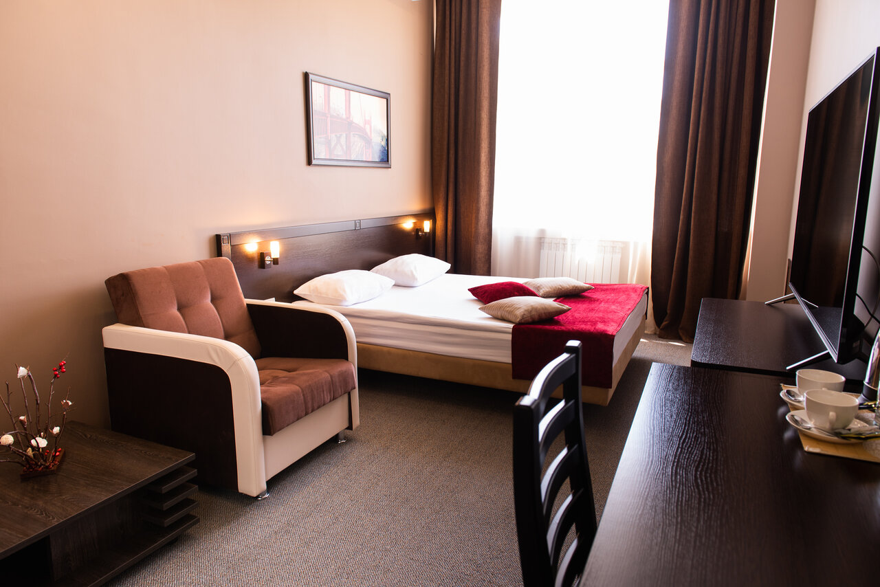Прекрасная гостиница, внимательный и отзывчивый персонал,готовый помочь в любой ситуации! Все чисто и аккуратно! Завтрак входит в стоимость проживания,порадовал своим ассортиментом))) Пообедать можно так же в ресторане на 1м этаже,широкий выбор блюд и приятные цены!