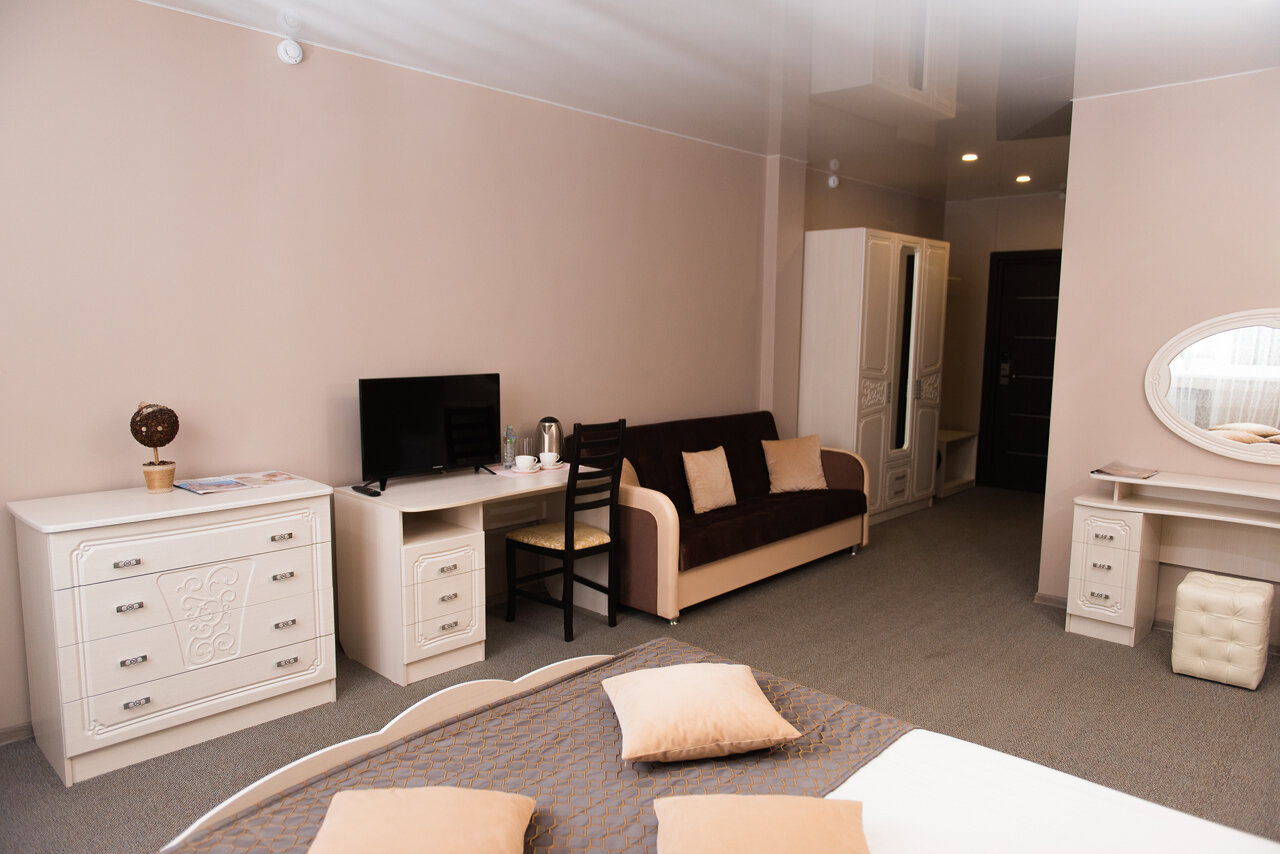 Отличная гостиница. Уютная! В номере за 3000 руб/сут. Есть халат, тапочки, бритвенный набор. В номере вода. Удобная кровать, чистое белье. Очень адекватная гостиница. Спасибо! Единственное, на завтрак омлет немного забит, не воздушный! Но завтраки вуцсные!.