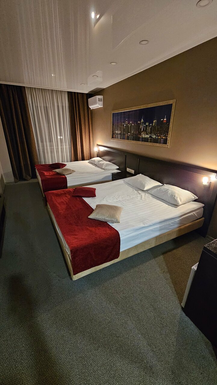 Достоинства: -Чисто -Всё новое -Хороший шведский стол -Отзывчивый ресепшн Недостатки: -Слышимость! Узнал как зовут соседа и его жену, когда они разговаривали по телефону. Слышал абсолютно каждый раз, когда смывался унитаз, такой себе будильник. -Ресторан. Уровень столовой. Водку подают тёплой, хлеб к борщу когда уже всё доедаешь, сырое пюре с биточками согласились переделать и подали через 10мин с теми же биточками, естественно остывшими. -Нет закрытой парковки. Автомобиль оставляешь на тротуаре около проезжей части.