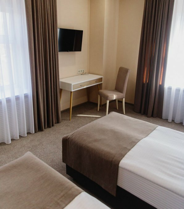 Из плюсов: Хорошее расположение Отличный ремонт Прекрасный персонал Из минусов: Завтрак не шведский стол (но это лично для меня, на завтрак 3 варианта меню, голодным не будете, но удобней выбрать самому) Шумоизоляция (сверху были непонятные звуки, возможно ремонт, был в номере 101) Рядом трамвайные пути ( очень напрягает)