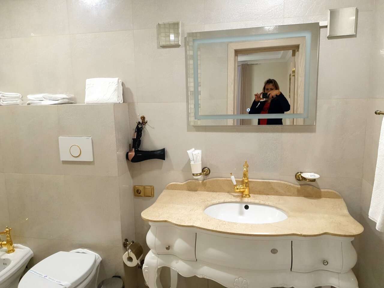 Очень приятный персонал, готовый во всем помочь. Ресторан (что завтраки, что по основному меню) на 4ку, барная карта на 3 🙁 номера чистые, белье свежее, целое. В ванной на меня выпала розетка, фен дышит на ладан 🙁 напор воды слабенький. Слышимость между номерами отличная. Вайфай хороший. Удобства средние — халата, например, нет, из косметических средств толькл зубной набор с оооочень неудобно открываемой зубной пастой, шампунь и гель для душа. Запасайтесь своими!