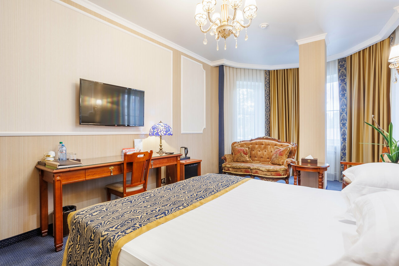 Шикарная гостиница! Большой и красивый номер. Вежливые администраторы. Всё чисто. Как заходишь в гостиницу сразу атмосфера чувствуются Королевская))) и естественно вкусный завтрак! 5+