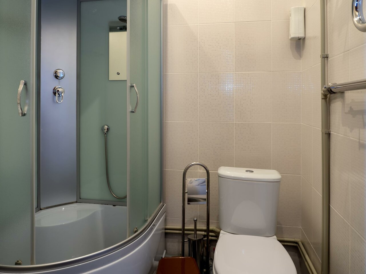 Душевая желает быть лучше!!! Очень сильно мешает звук насосной станции!!! Нет мусорного ведра.