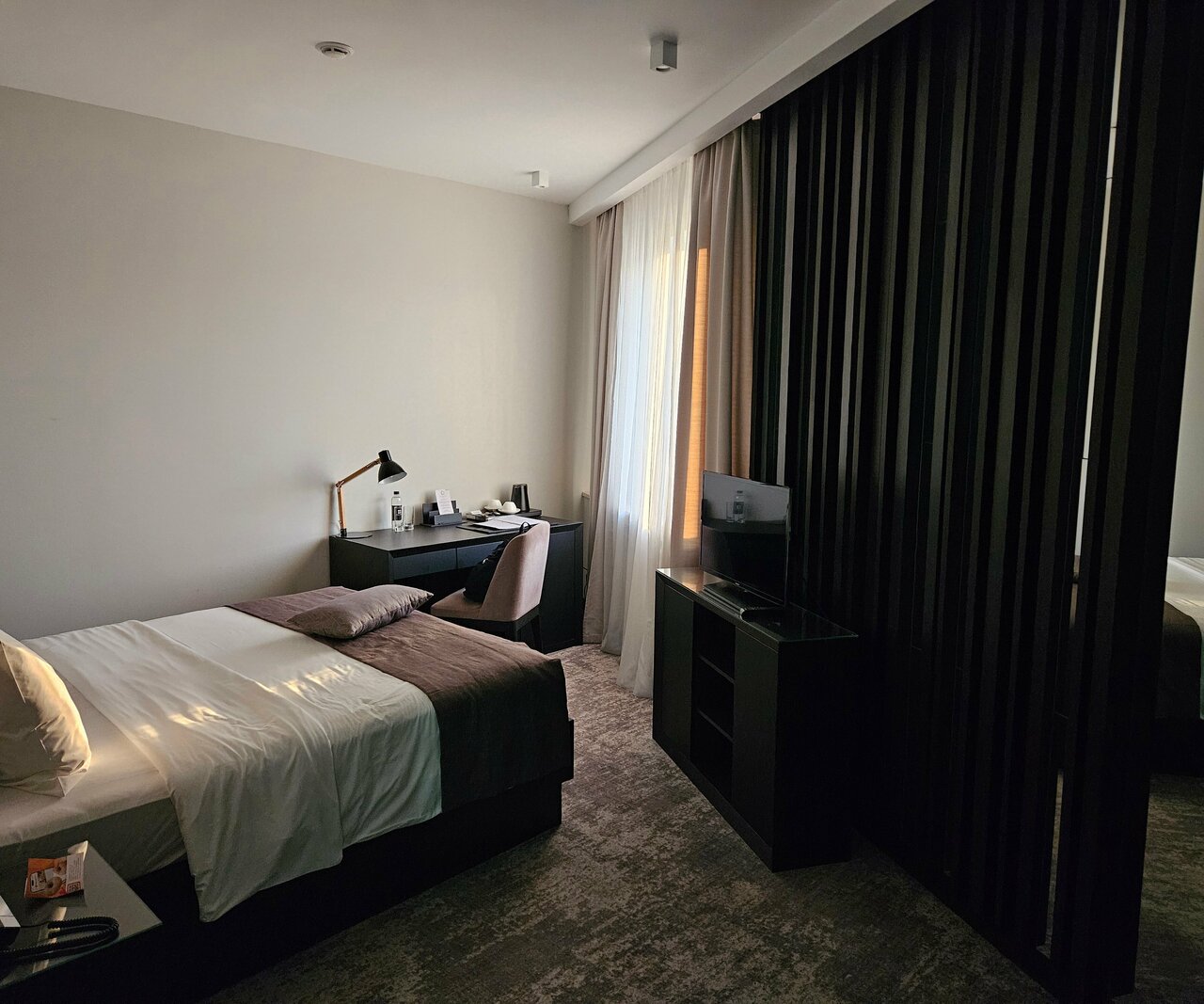 Чистый просторный номер, хорошая звукоизоляция, персонал приветливый и доброжелательный. Удобная сенсорная система управления светом и кондиционером (на стене у входа, также возле каждой кровати). В стоимость проживания был включён завтрак (шведский стол), что также приятно, тк в большинстве отелей завтраки за доп плату.