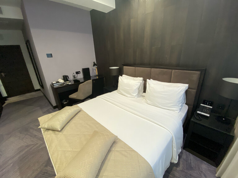 Была в отеле буквально с четверга по субботу. Отель заявляет себя 4*. Я бы не согласилась. В отеле 4* не может быть сломано окно. В моем номере категории superior (улучшенный) оно было сломанно. Слив в ванне не может не работать, а он наполнялся по щиколотку. Косметика отеля хорошая.Кровать — вопросов нет. Но, что меня удивило больше всего, у меня даже документы не спросили, кто я, где я живу. Завтрак — маленький выбор и мне было не вкусно.Банкетный зал у них хороший. Лобби приятное. Персонал мне не понравился, пришлось просить дрп халат на второго человека. Я желаю отелю улучшить качество обслуживания, поработать над завтраками, а так очень даже не плохо.
