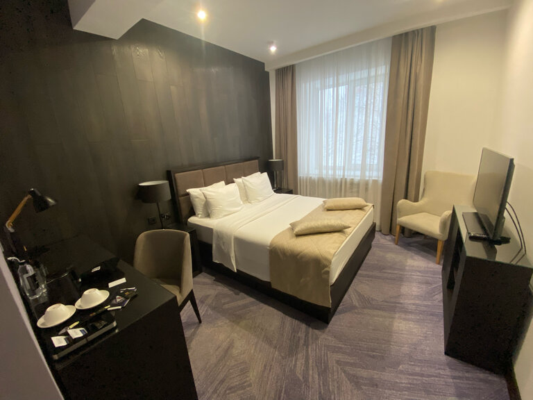 Всё приятно и чисто. Здесь царит уют и покой. Честный сервис. Немного не хватает хорошего тв, шумоизоляции и теплого пола в туалете, но это лично мне. Номер — стандарт.