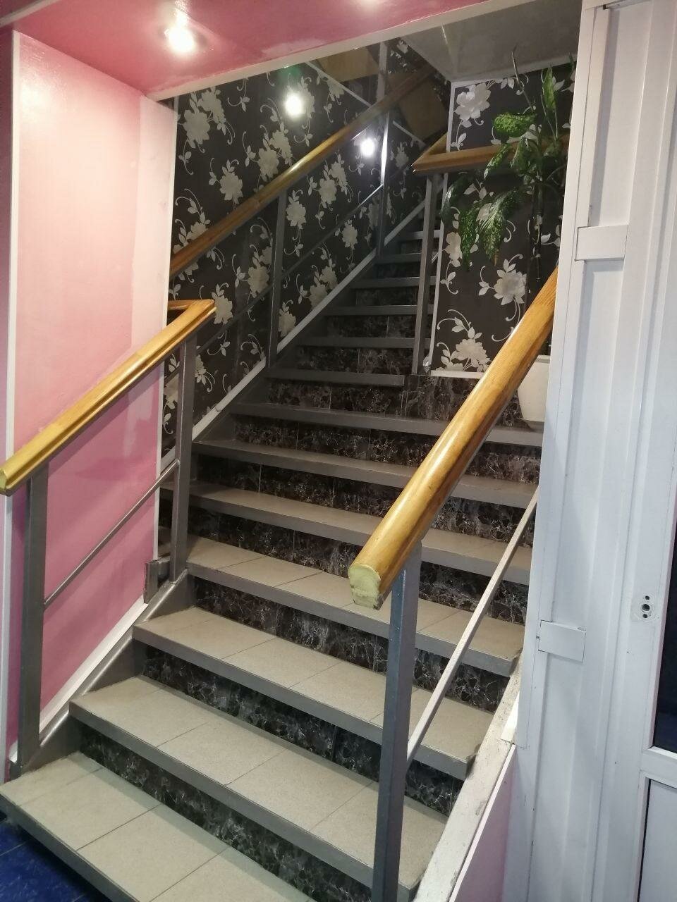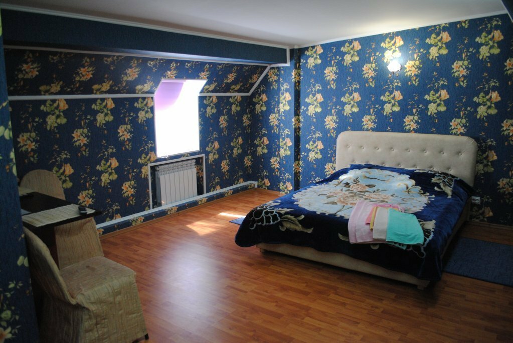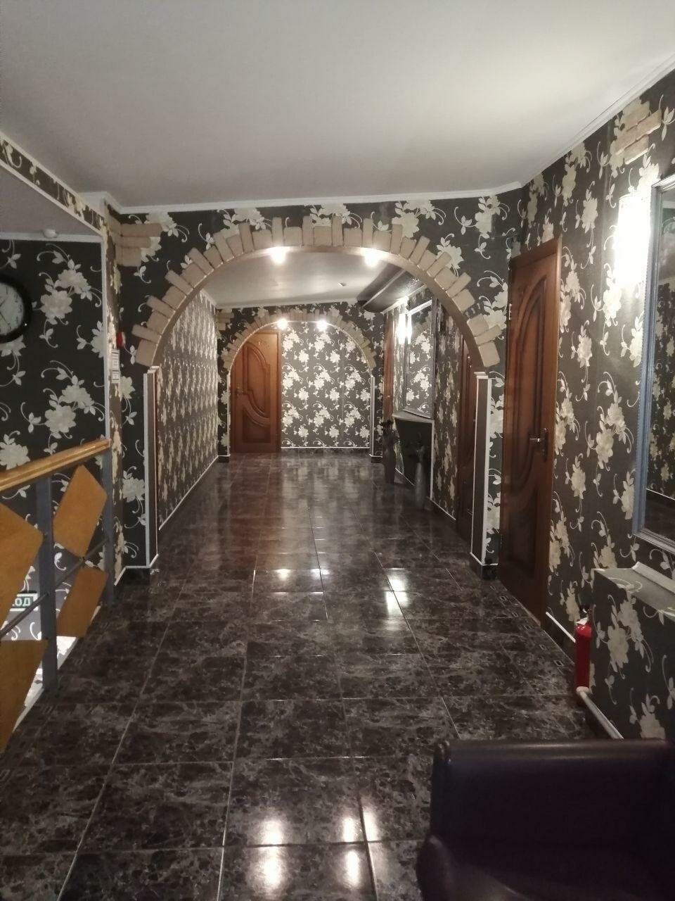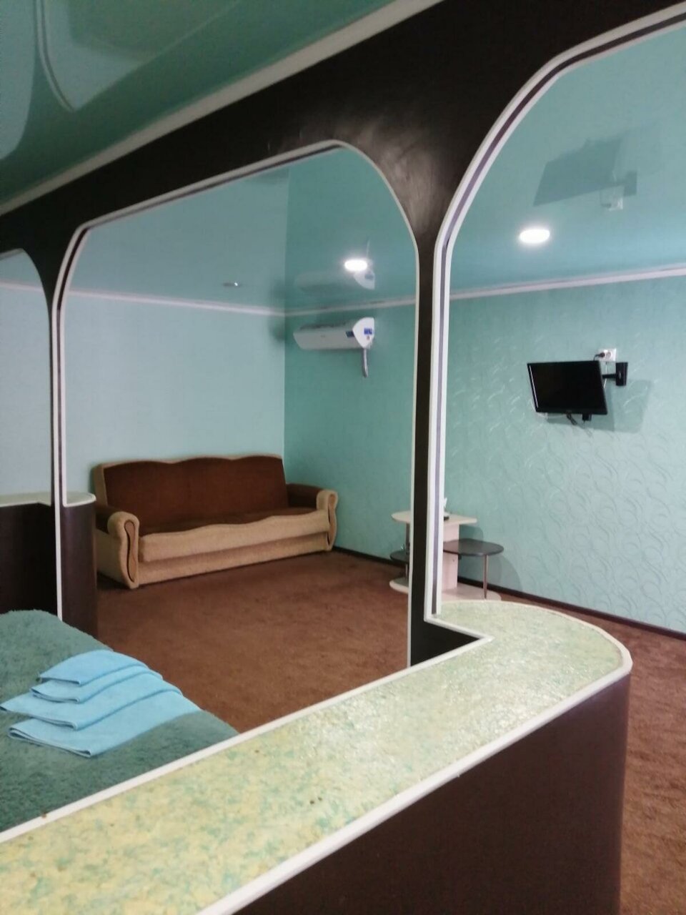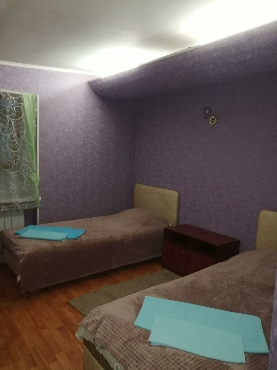 Гостиница исключительно на переночевать. Находится далеко от центра, для туристов не очень удобно. Ванна и туалет в каждом номере. Все исправно работает. Есть кондиционер, телевизор, холодильник и даже посуда. Все немного обшарпанное, покрывала определенно требуют химчистки. Но в нашем номере была огромная двуспальная кровать и большой раскладной диван. Что очень спасало нашу семью из 4х человек. А цена за ночь на 4х вообще смешная 2т. К тому же персонал очень приветливый и идёт на встречу всем просьбам. Выезд считается на с 12.00, а с момента заселения на сутки. Это очень удобно. В коридоре кулер с горячей и холодной водой. В целом не хватает, более тщательной уборки. И нужно что-то сделать с прокуренным запахом от стен и мебели. Рядом остановка общественного транспорта до центра, КБ, Пятёрочка, магнит, парикмахерская.