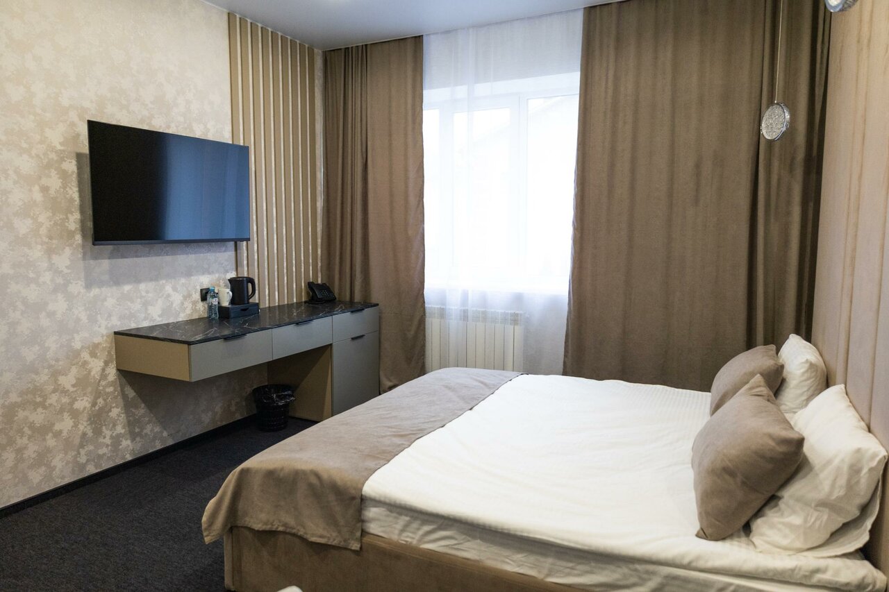 Самый адекватный отель из всех остальных в нашем городе. Молодым снимали номер после свадьбы всё супер. Рекомендую. В остальных ценник космос и ремонт не первой свежести.