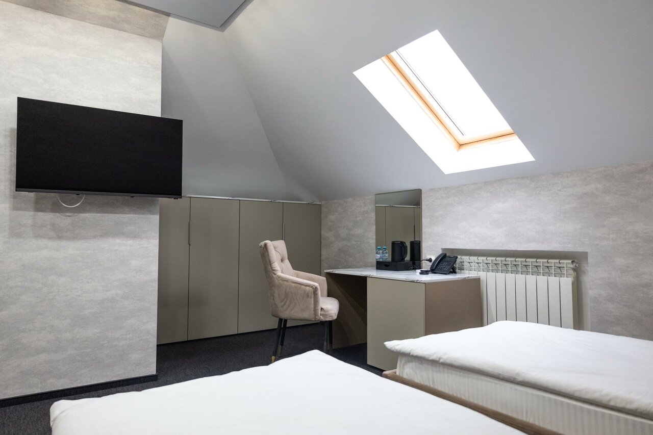 Хороший отель, но есть несколько особенностей, первая он наполовину из дерева, и как следствие плохая звукоизоляция, мы жили на третьем этаже и нам было норм, а вот под нами это вопрос. Ну и отсутствие лифта тоже минус. Теперь плюсы, достаточно бюджетный вариант, находится рядом с выездом из города, что на мой взгляд плюс, хорошие номера, в низк есть нормальный ресторан, с вкусным борщом))) Завтраки тоже норм, особенно рекомендую русский завтрак и сырники!