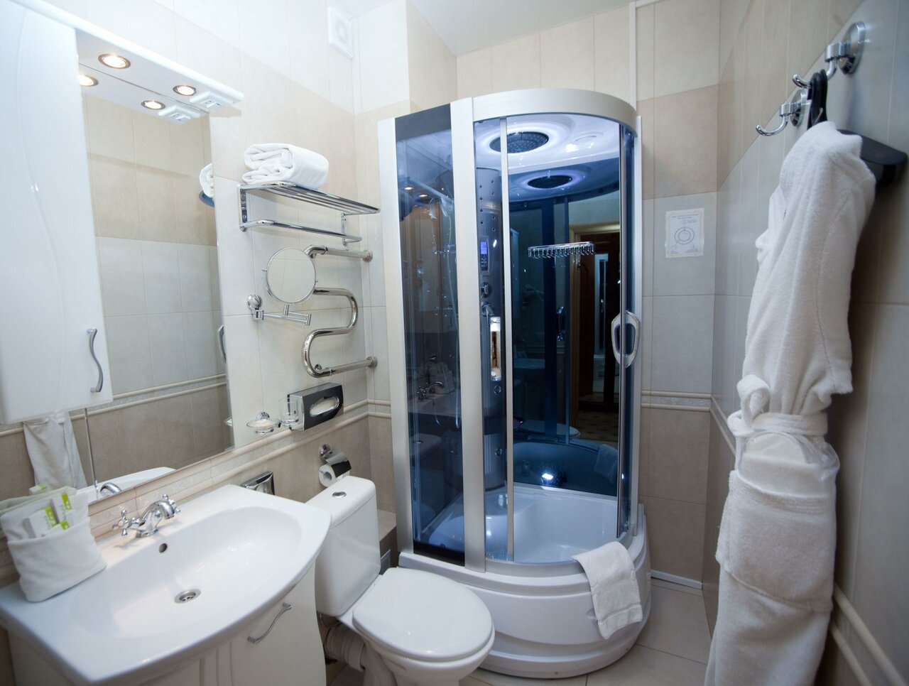 Весьма не плохо, но, душевая кабина телка в местах стыков стекла и основания. И это в номере повышенного комфорта… Не порядок!