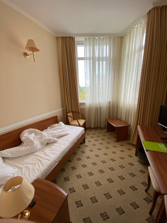 Неплохой отель. Небольшой и комфортный, так как находится в тихом центре. Завтраки разнообразные. Слышимость в номерах очень большая. Одноместный номер крошечный. Ванная комната супермаленькая. Душем пользоваться проблематично, так как это кабина с тропическим душем, лёгкой и ещё струи на стене( кабина старого типа). При выключении воды лило из всех отверстий одновременно,при чем холодная вода. Может это только в моем номере. В номере есть мини бар,чайник,вода. Кровать с хорошим матрасом. Вид на частный сектор. Впрочем, Курск это и есть частный сектор.