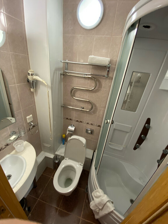 Отличное расположение гостиницы, но номера очень маленькие, а размер сан узла, так вообще удивил. Сидишь на ‘троне’, а колени упираются в дверь