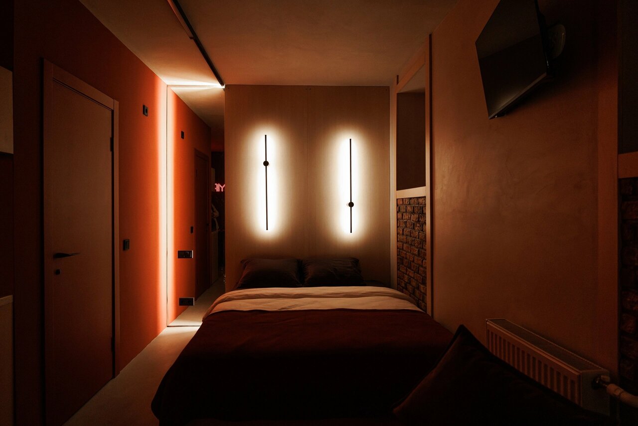 В начале были сомнения относительно репутации заведения. Но ожидания превзошли себя . Поразили чистота уют, комфорт, полотенца и постельное бельё. Бельё не как в классическом отеле, а подобрано по цветовой гамме номера. Останавливались в Амстердаме. Каждый номер с названием города. Насчитали 6 номеров. При входе были приятно удивлены аромату, но в номере аромат отличался и это придало некого шарма. В душевой комнате неоновая подсветка, смотрится очень необычно, да и в целом номер весь в приятном неоне. Удобный матрас, мягкая кровать, чай кофе, офигенные полотенца и халаты. А еще мы заселились без ресепшена и администратора. Все дистанционно. Не ожидали что в Курске такое есть. Это получше любого курского отеля. Однозначно рекомендуем!!! 10 из 5
