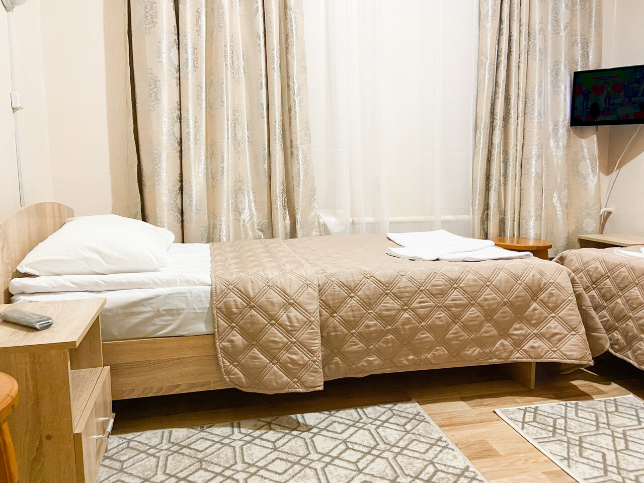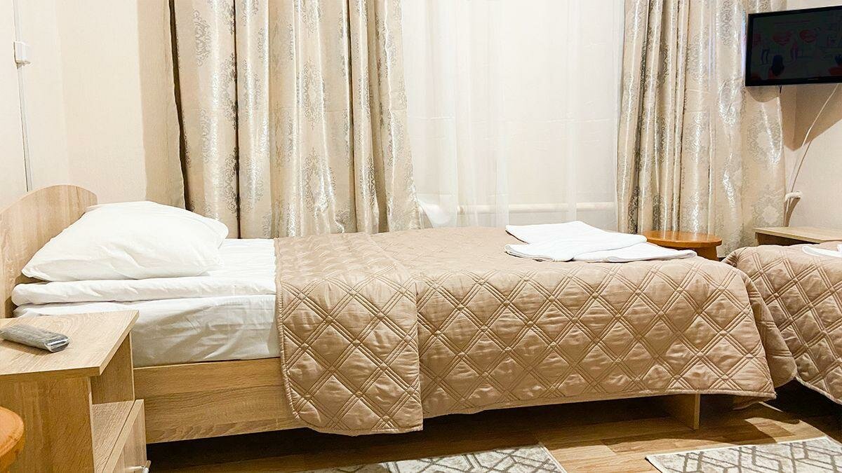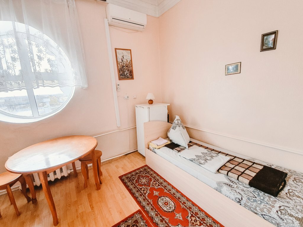 Приезжал в Курск при работе, остановился на одну ночь. Номер достался по цифрой 11,холодильник, чайник,это всё из удобств, что было, туалет и душ на этаже общие, но находятся в разных частях корридора. От предыдущих постояльцев остались продукты питания уже частично съеденные(судя по всему персонал решил, что нам они нужнее) . Всю ночь свет от прожекторов попадал в комнату, складывались впечатления, что постоянно утро, тюль на окнах от этого не спасала. Ну а в остальном всё прилично, вежливая девушка на ресепшн, тёплый номер и мягкая кровать.