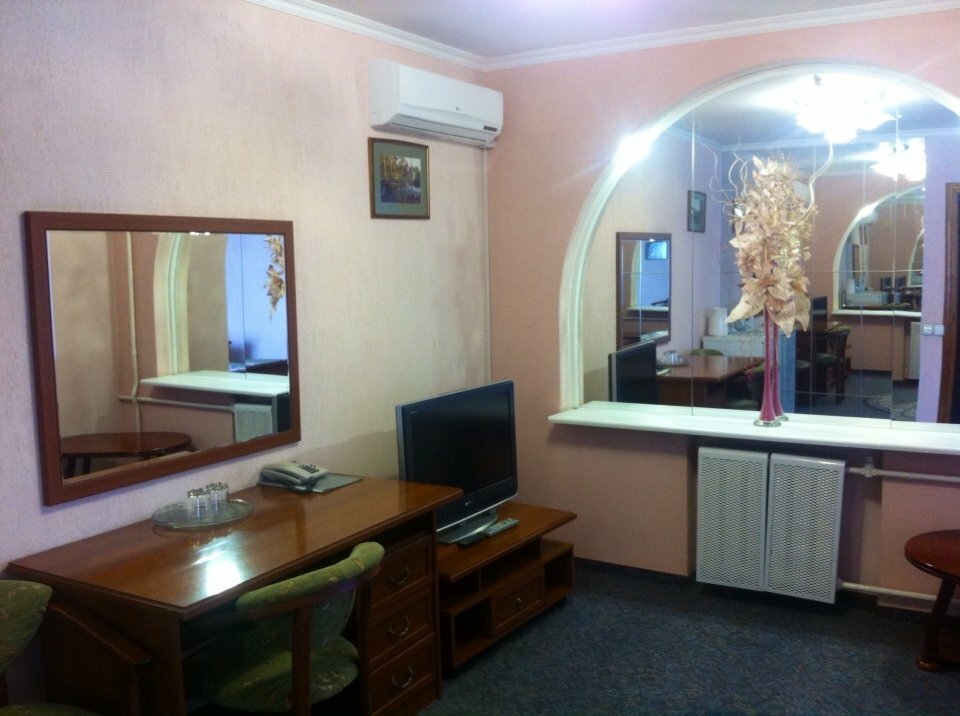 Красивый холл, более-менее ухоженные номера с работающей сантехникой. Правда, в номере проблема найти свободную розетку — имеющиеся заняты под ТВ и приставку. На удивление неплохой завтрак — шведский стол. Большая парковка под авто.