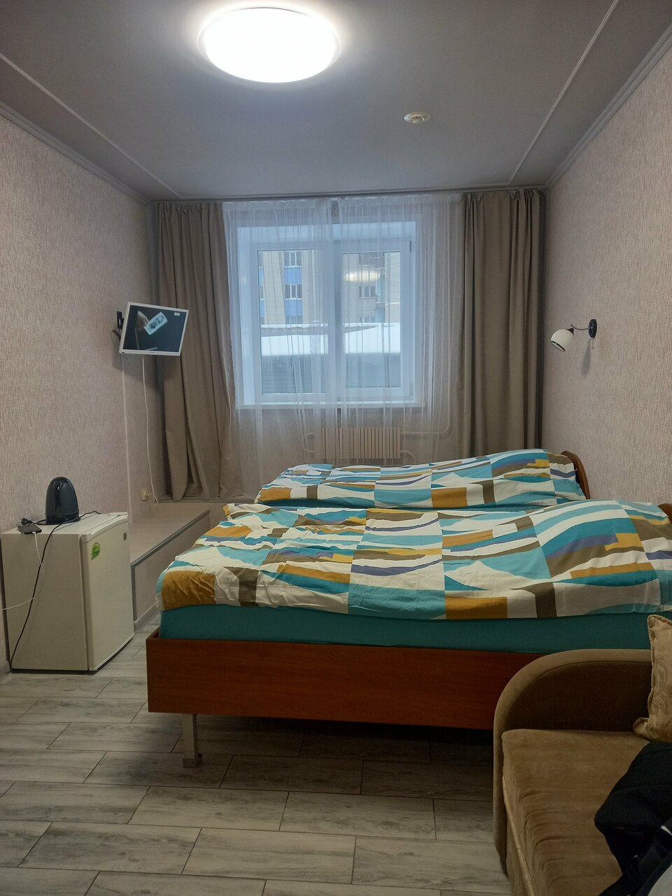 Второй раз приезжаем с ребёнком в эту гостиницу. На одной кровати втроём. Это плюс т.к. везде уже надо брать номер дороже. Всё чисто, опрятно. Есть нюансы кто то накурил в номере до нас, унитаз сам по себе шумный что ппц, слышимость. Но это всё мелочи которые можно пережить. Т.к соотношение цена/качество 5 из 5. Из минусов на сайте номер 3 места и на фото доп. диванчик которого в итоге нет. Нам было не принципиально, но для кого-то это будет большой проблемой.