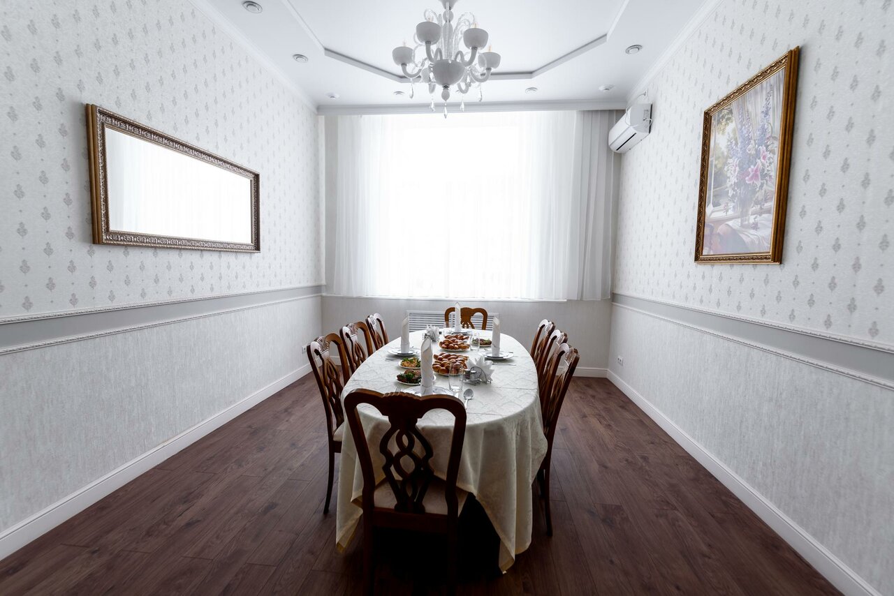 Отвратительно все, что касается сервиса. Номер люкс, три комнаты, два телевизора — ни один из них не показывает ничего кроме ряби, есть халаты, но нет горячей воды, посуда в номере, но нет ни пакетика не чая, не кофе. Интернет подключается, но скорость никакая. Телефон в номере не работает. Бронировал и оплачивал через официальный сайт гостиницы, при этом в самой гостинице никаких отчётных документов не выдали. Только справку о заселении. Завтрак оплачивал отдельно, оплата картой невозможна. Только наличные. Завтрак с 7.30 утра, да и то если найдешь этот буфет и достучишься до поваров. На завтрак два жаренных яйца с жареной вареной колбасой, каша на воде с добавлением молока и пакетик чая. Отдельно приносят чайник. В целом — всё ужасно, кроме расположения гостиницы, размеров номера и матраса. Старое всё, ванная как в общежитии. Проблема в том, что в сентябре 2024 года мест а гостиницах Курска почти нет.
