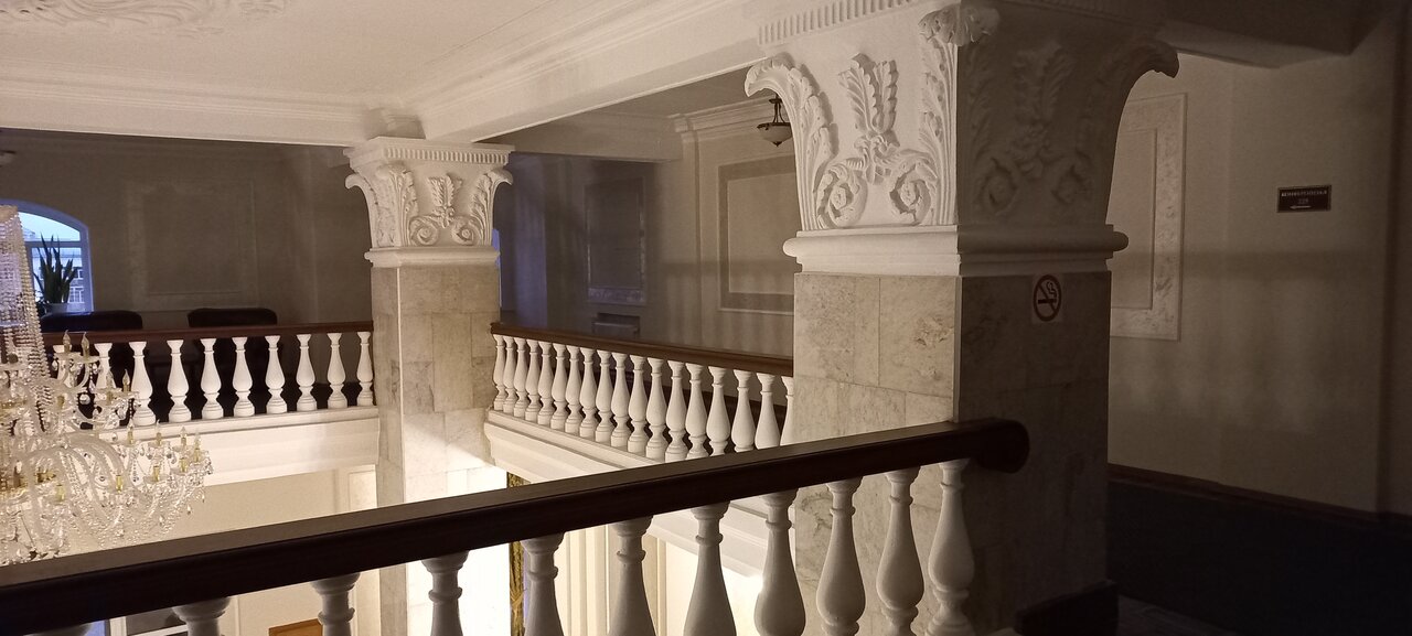 Приветливый персонал. Само здание монументальное и построено в 50х видимо. Классика сталинской архитектуры. Мрачновато слегка. Но все компенсирует отличная цена!