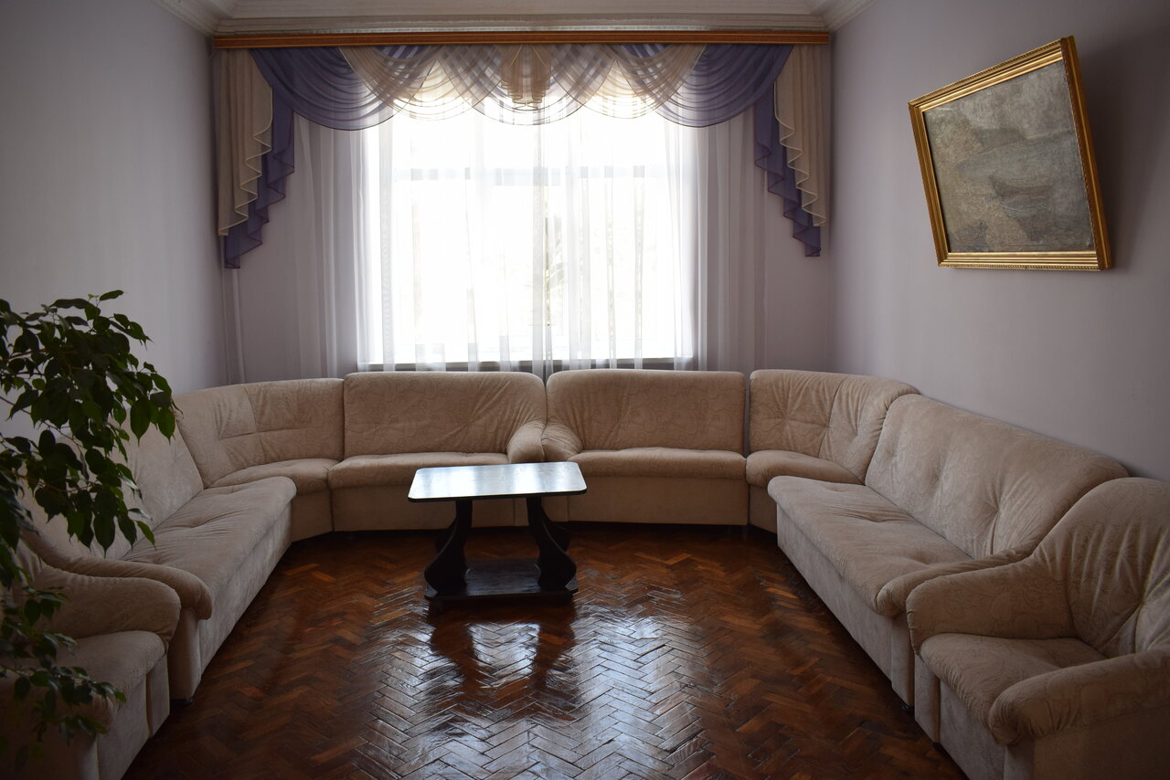 Классическая советская постройка послевоенной эпохи. Широкие коридоры, высокие потолки. Неплохая недорогая кухня. Единственный минус — это запах канализации. Пахнет итна этажах и в номерах.