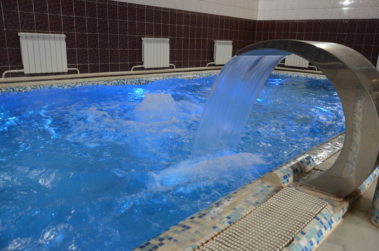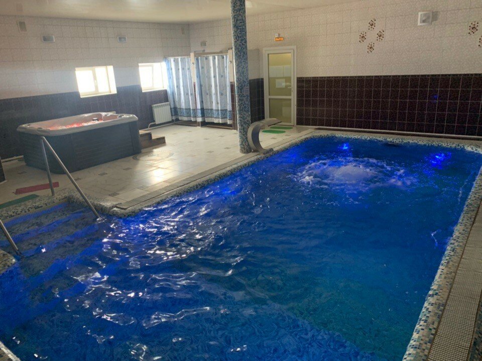 Гостиница очень чистая, современное оборудование в каждом номере. В номерах имеется все удобства, туалет и душевая раздельно. Потолки по 3 метра, в комнатах светло и уютно , как дома. Кормят по домашнему. Бассейн чистый, воду меняют каждую неделю. Сама гостиница находится в 3 минутах от вокзала и центра города.