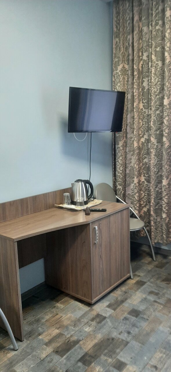 В номере чисто, обслуживание хорошее и доброжелательный персонал. Спасибо большое. Телевизор в каждом номере, отлично показывает. До Питера не далеко.
