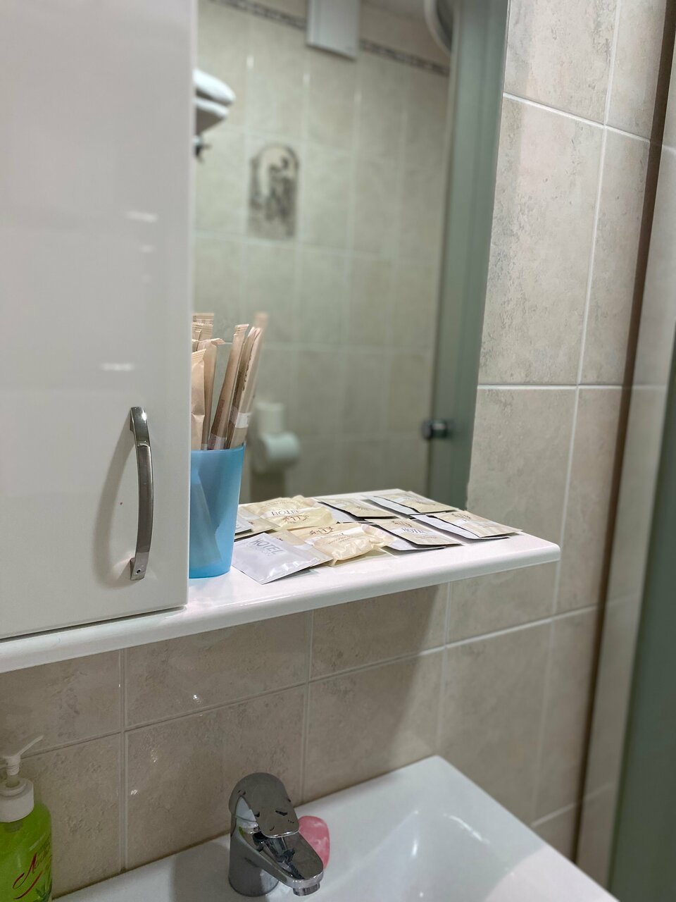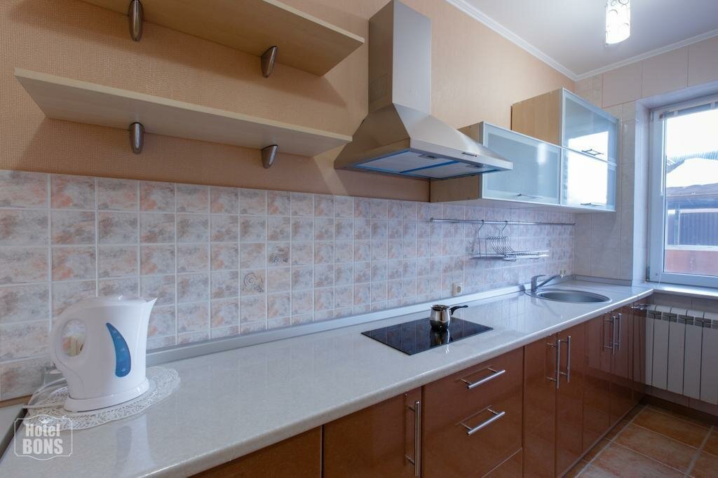 - Наличие кухонных принадлежностей (индукционная панель, микроволновка, чайник, посуда).