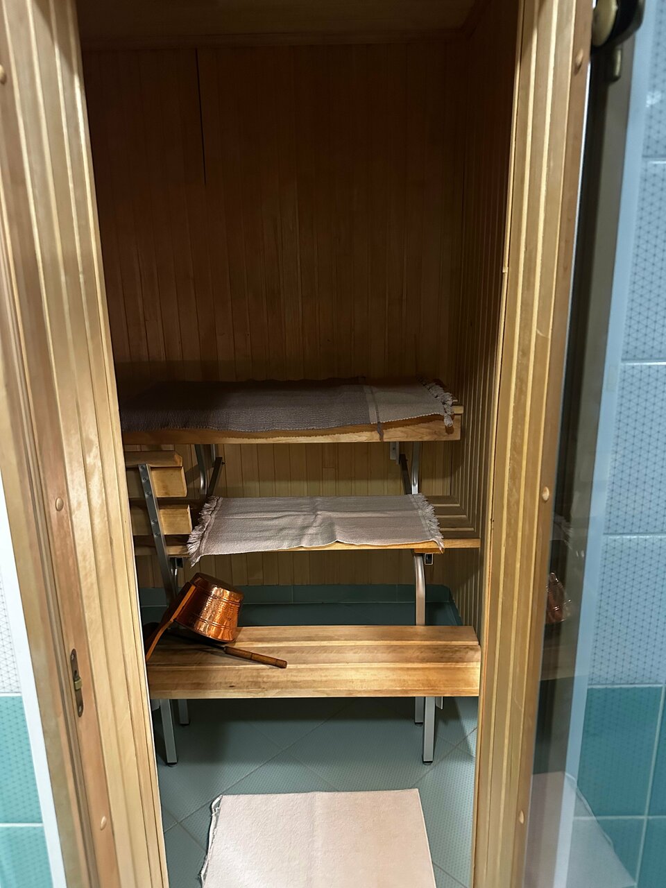 Если вам нужно остановиться на ночь в Ланденпохья, эти апартаменты отличный вариант. Это один номер, расположен рядом с автомастерской, у них один хозяин. Из-за поломки авто мы были вынуждены заночевать там, и хозяин любезно предложил эти апартаменты. Очень чисто, мебель, посуда из Икеи; все, что нужно, есть, даже сахар на кухне и личная сауна, прямо в апартаментах. Из кухни выход на задний двор, где можно воспользоваться мангалом, шампуры имеются. Вайфай, телевизор, холодильник, плита, микроволновка, вся нужная посуда. Очень милый диванчик на кухне. Думали, будет шумно от машин, приезжающих на ремонт, но нет, все было тихо. Фото кусочка сауны:)