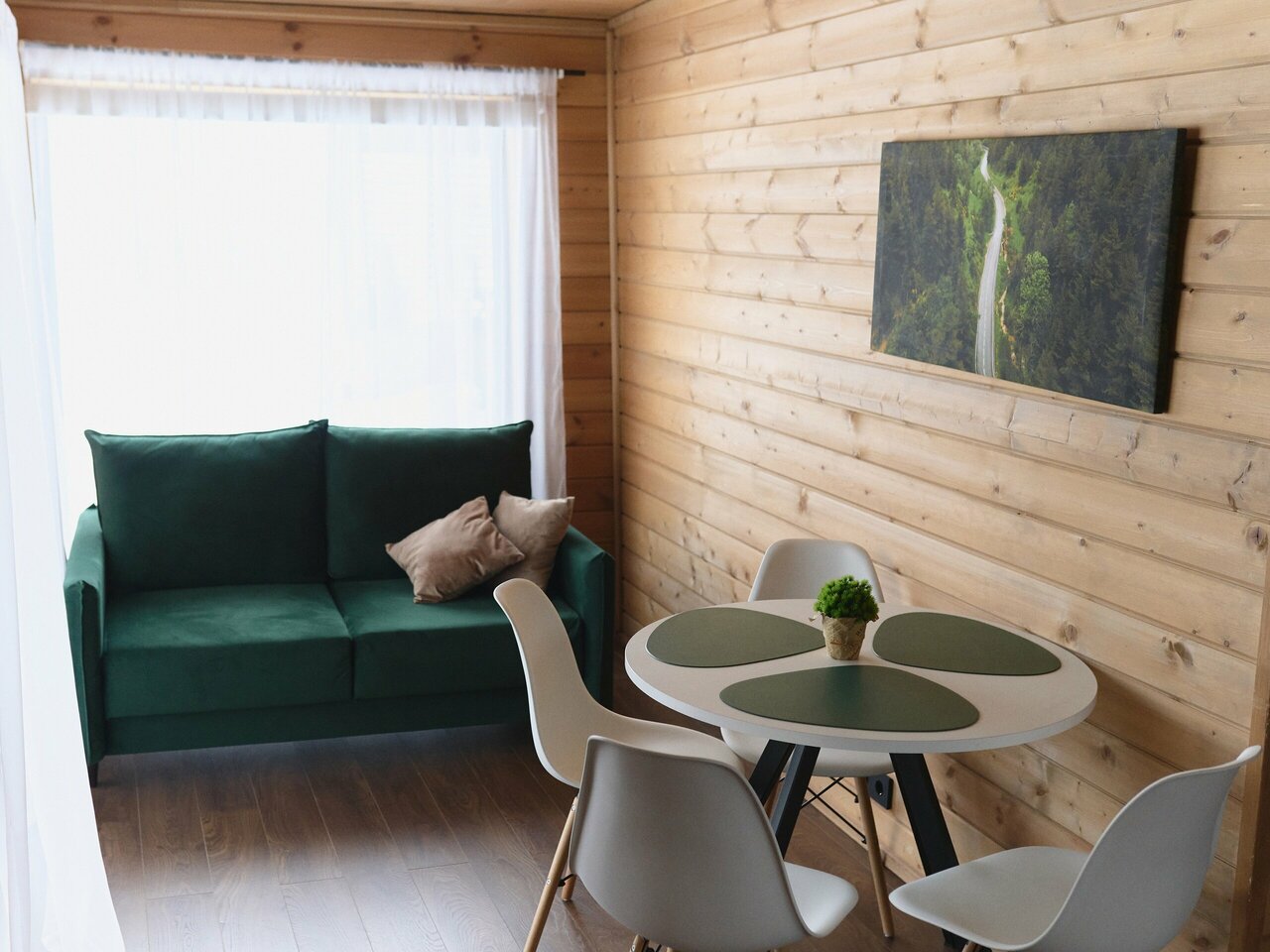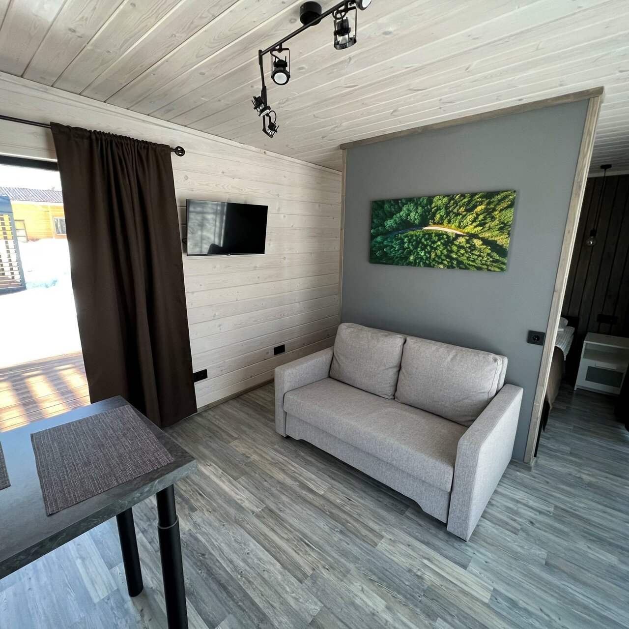 Бронировал домик на новогодние выходные. Остался очень доволен. Домик чистый, запахов нет. Полный комплект посуды, тарелки бокалы и тк далее. Не смотря на то что температура опустилась до -25,в домике было тепло. Даже обогреватель который стоял там на всякий случай не понадобился. Так же нам предоставили ваучер на завтрак, в ресторанчике Рундучок. Ресторанчик очень уютный, кормят вкусно, мы взяли карельский завтрак, очень даже сытно. Очень рекомендую там чай, очень вкусный. В шаговой доступности озеро, так что для любителей зимней рыбалки идеально. Рыбаков было достаточно много. В целом я пребыванием доволен. Поэтому рекомендую. Особенно людям которым хочется отдохнуть от городской суеты. Тишина и спокойствие.