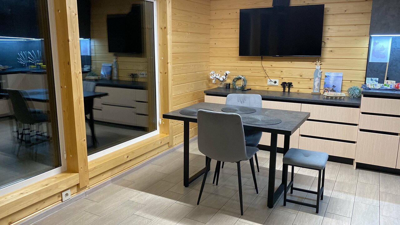 Прекрасный домик для отдыха. Очень жаль что стоит очень маленький холодильник и нет нормальных окон для проветривания. В доме было очень жарко. Красивая и ухоженная территория около домика. Надеюсь вернемся еще)