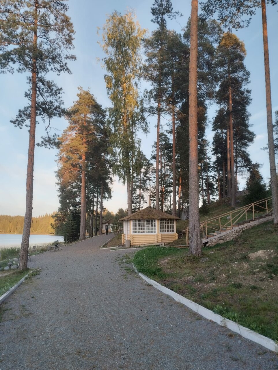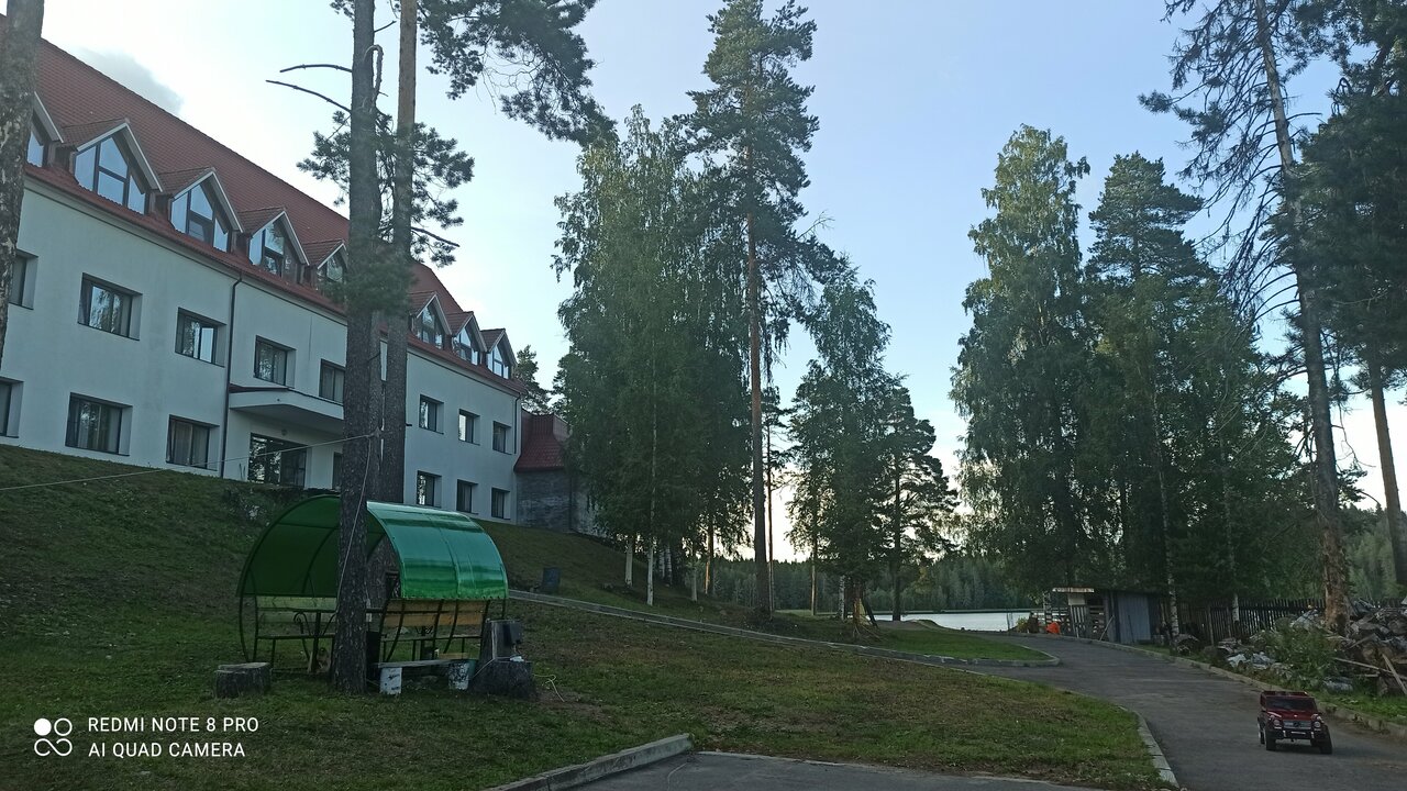 Красивый вид на озеро, есть уютная беседка. Номера требуют косметического ремонта (полы скрепят, душевая кабина и унитаз ходуном ходят). На одну ночь переночевать вполне нормально. Поблизости ни одного магазина и в ресторане отеля тоже ничего не купить, все было закрыто.