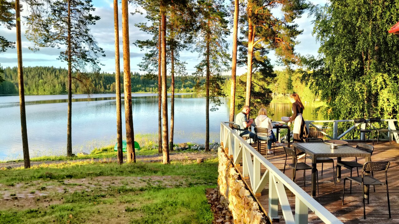 были в 11 номере, очень не удобно, бойлер и отвратительная душевая кабина , тесно и неудобно. номерне уютный , тв не настроенны, wifi плохой. еда вкусная, тут не поспорить — но очень дорого. официант — молодая девушка, но думаю что научиться всему. в лесу у озера, по сути там раньше воинская часть была( территория огорожена, есть парковка) — без своей машины в Карелию вообще не стоит ездить))) завтраки действительно очень вкусно готовят , шведский стол — блины, оладьи , и прочая выпечка просто вкусные. в номере чисто, но чем то сильно пахнет. поеду ли в этот отель, да!!! . но думаю что им в отеле надо сначала привести его в порядок, уж лучше простая ванная или же большой душевой поддон со стеклянными стенками и дверкой , и ещё!) там можно порыбачить прямо возле отеля озеро прямо рядом, удобная открытая терраса, любуютесь озером и наслаждаетесь едой. за повара действительно респект!)