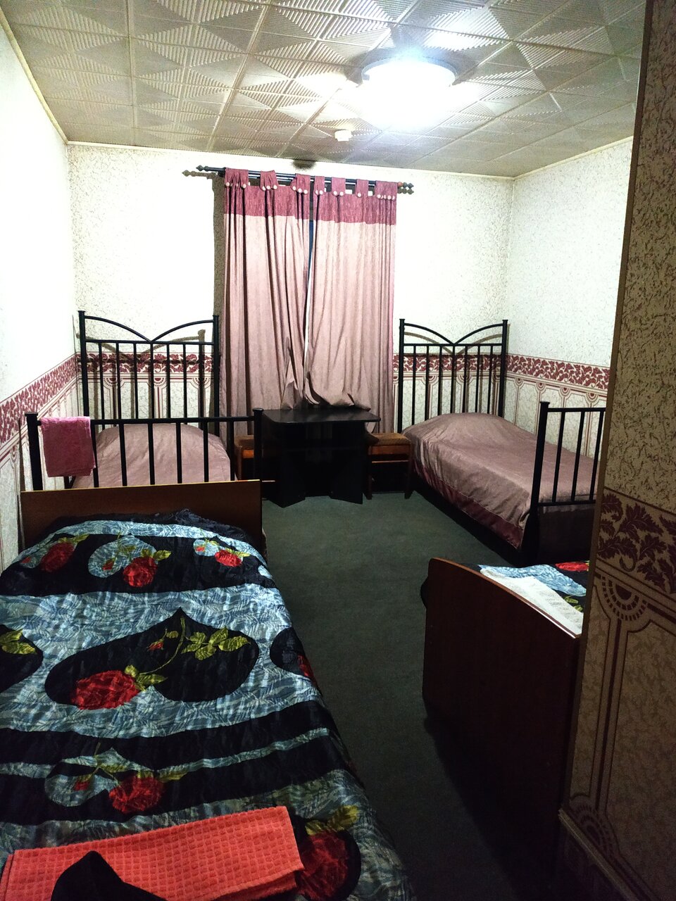 При Нас ни разу ни сделали уборку нет ручки на дверя разные одеялы верхные под краватью валяються стаканы бутылки чекушки так же под кровати пыл Бог знает когда там было убрано в последный раз телек неработает тоже старый как Мамомнт пульт тоже старый еле дышить и наполавину работае ну в общем Это Гостиница Для Пофиситов как то так☺