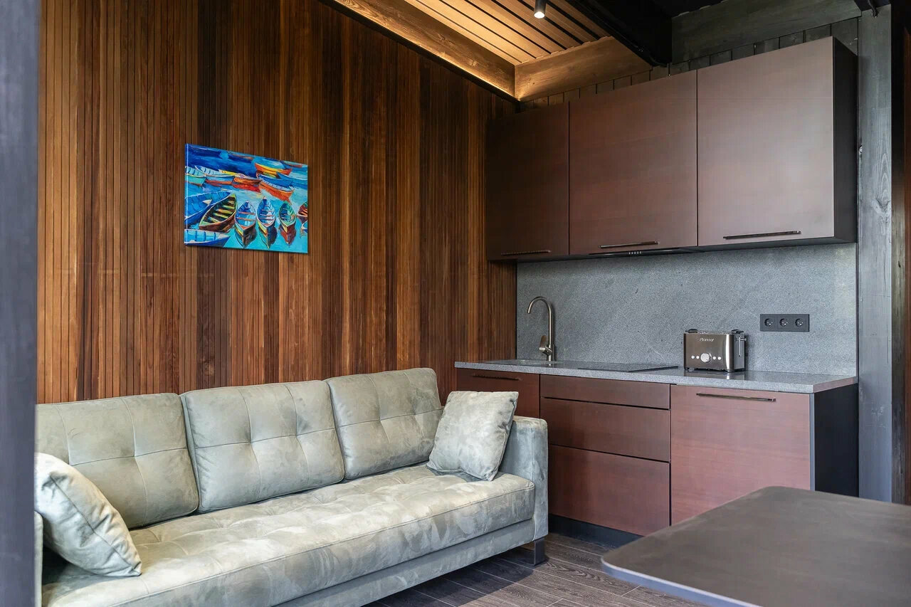 - Вкусные завтраки (шведский стол).; Уютный отель с дизайнерским ремонтом.; Хорошая транспортная доступность.; Современная архитектура и единый стиль поселка.; Возможность рыбалки и водных развлечений.