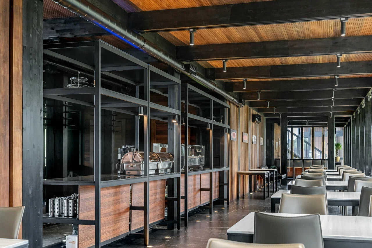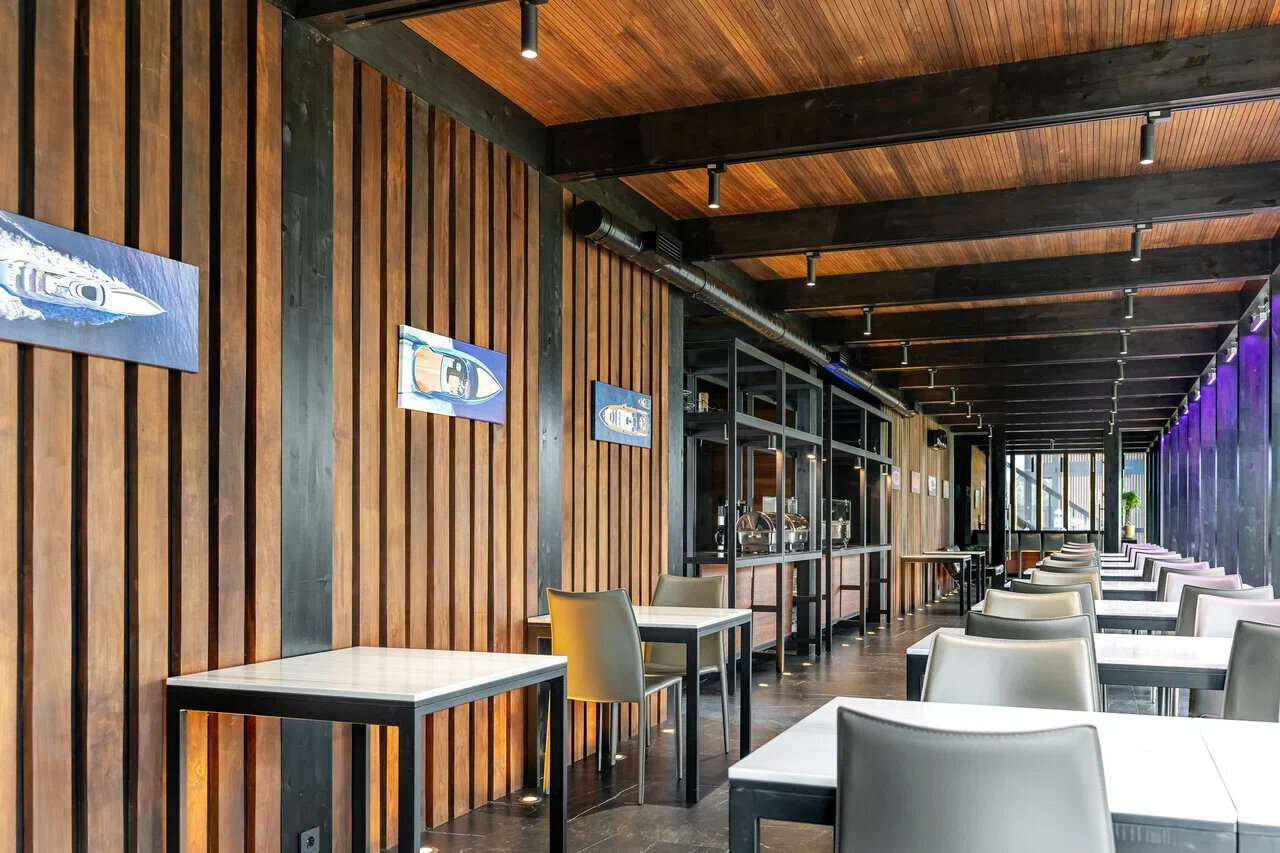- Вместительный стильный ресторан на первом этаже.
