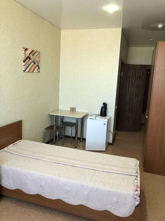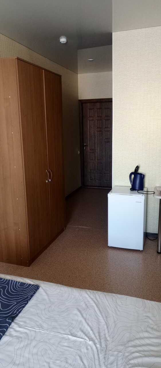 Все в шаговой доступности кафе, универсам, автомойка, шиномонтаж.В номере все есть туалетные принадлежности телевизор ,холодильник.чайник сплит все отлично.