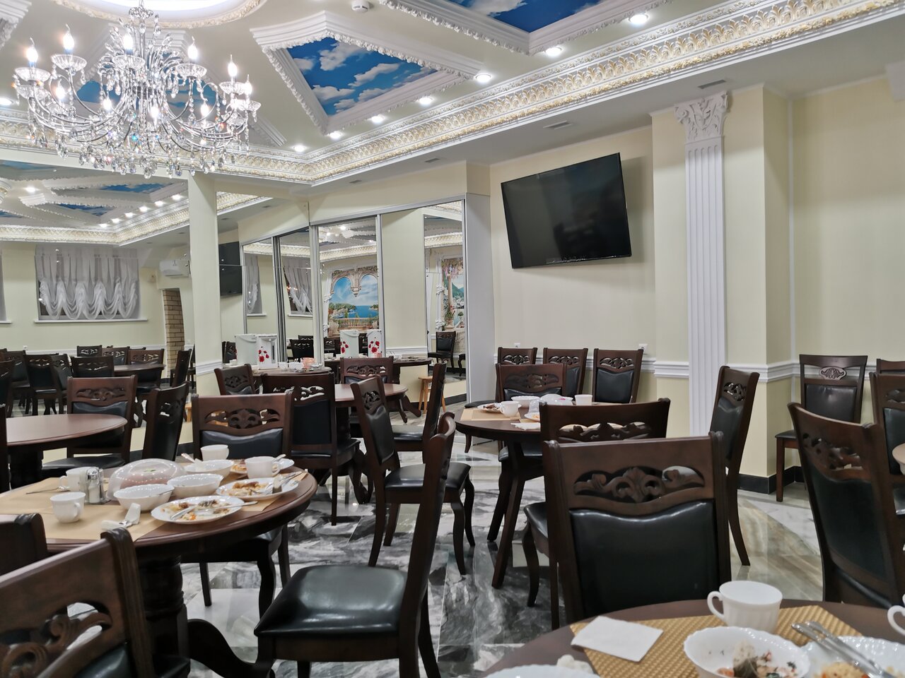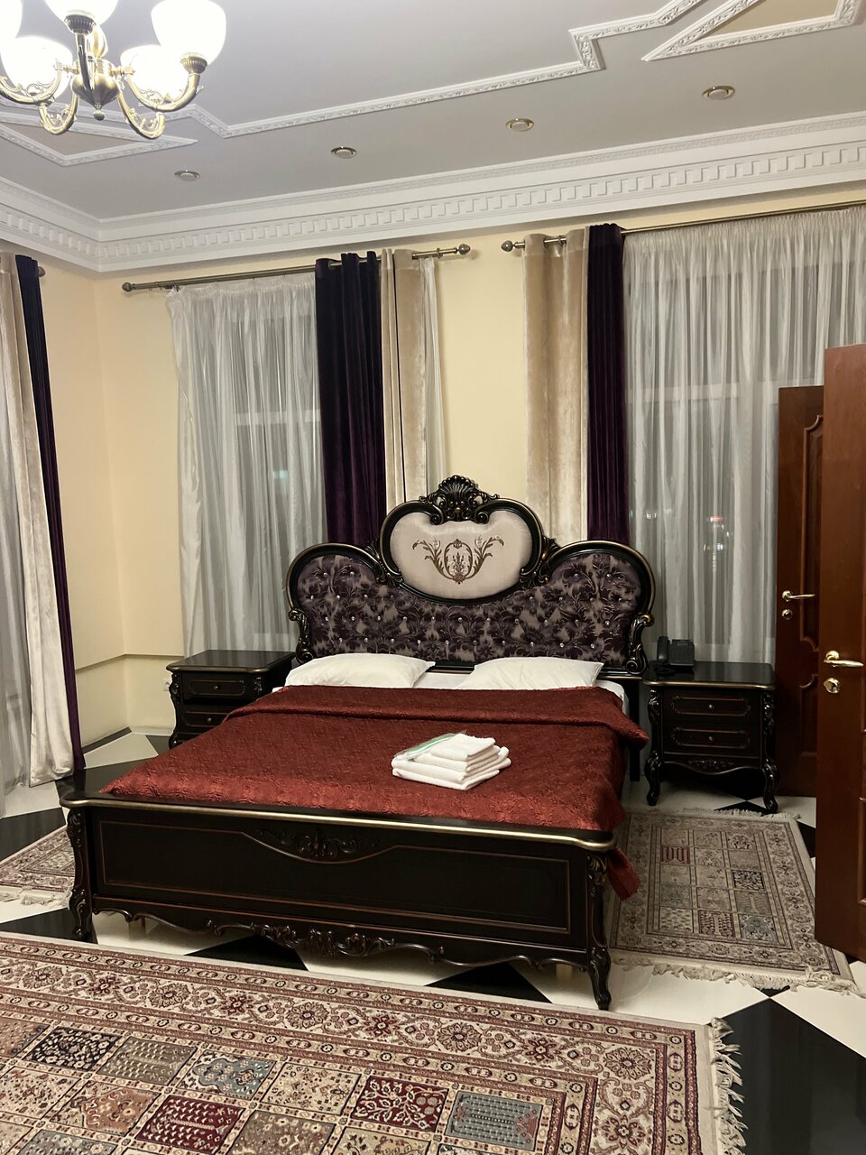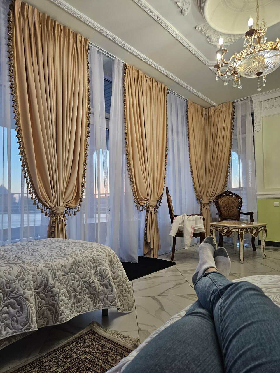 Очень пафосно, но уюта нет , за состоянием следят плохо. Завтрак минимальный. Ценник не соответствует уровню обслуживания, но конкуренции рядом нет, поэтому деваться некуда