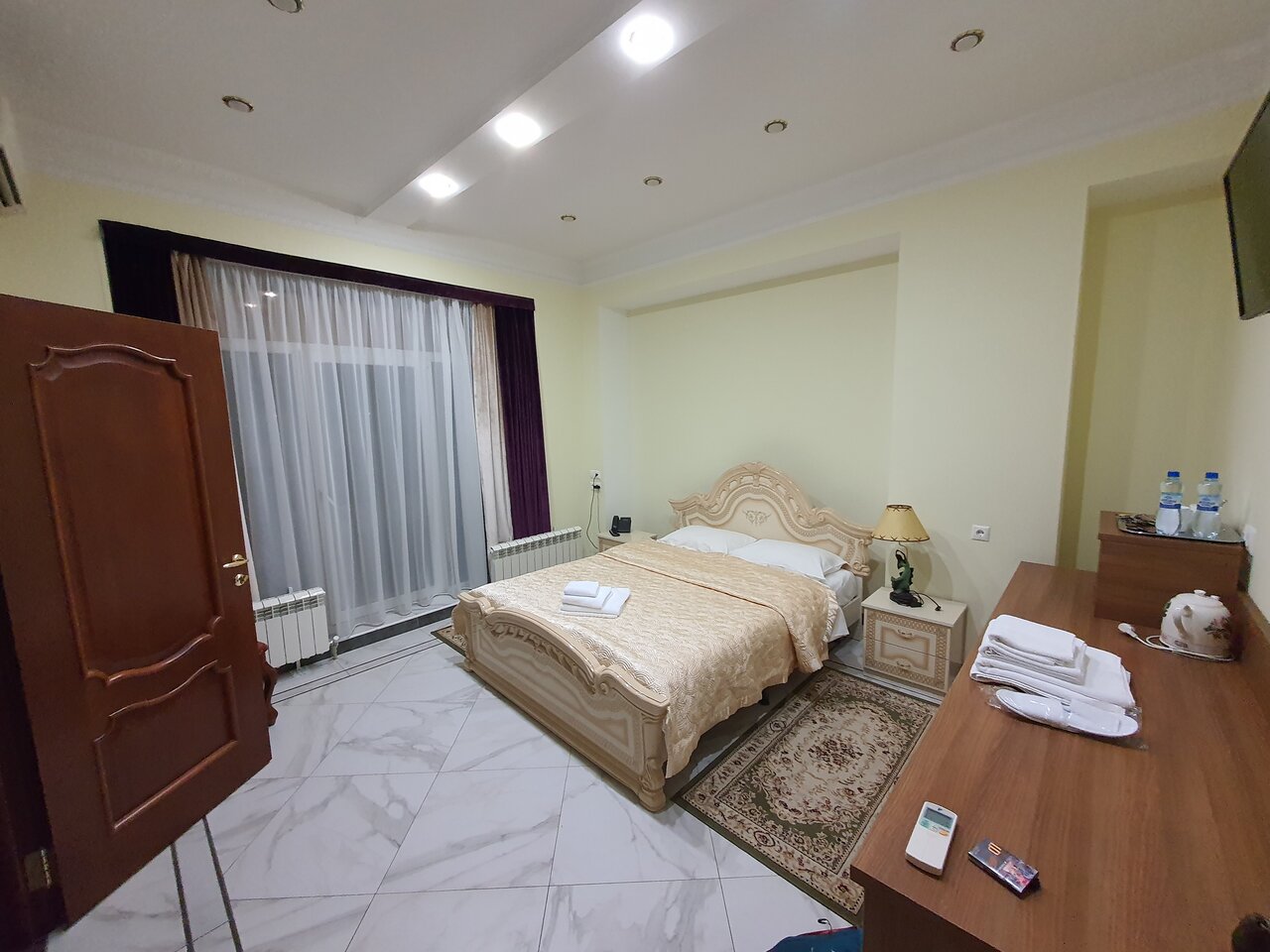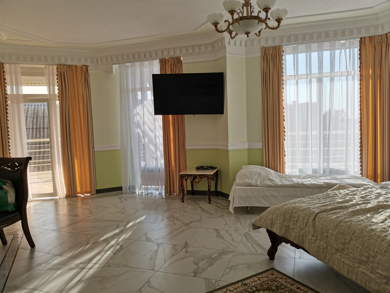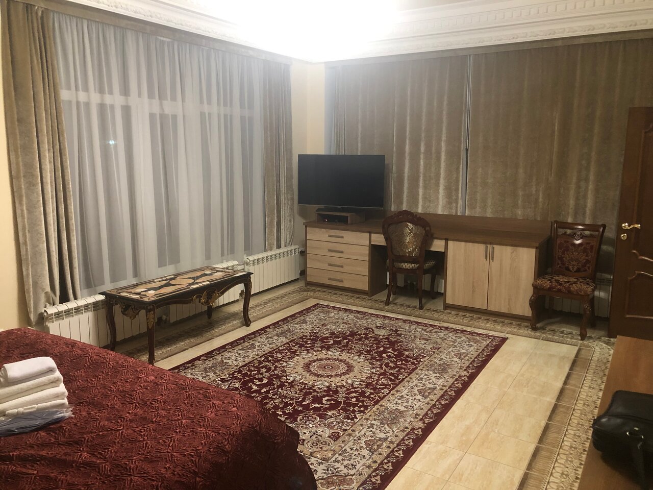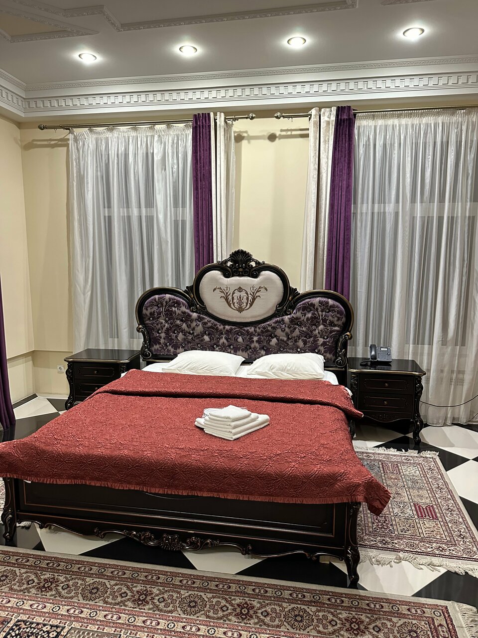 Очень пафосно, но уюта нет , за состоянием следят плохо. Завтрак минимальный. Ценник не соответствует уровню обслуживания, но конкуренции рядом нет, поэтому деваться некуда