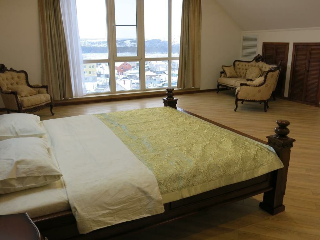 Сначала о плюсах: номер просторный,вид красивый,приветственный набор,находится недалеко от вокзала,тапочки полотенца Минусы: изголовье кровати сыпется прямо на подушки,прилипает к спине,полотенца сильно пахнут рыбой,за несколько часов берут как за сутки(заехали на 7 часов,отдали 4400₽ как за сутки)терминал не работает, из «еды» кофе и чай с сахаром,за такую сумму можно было бы,что-то сообразить