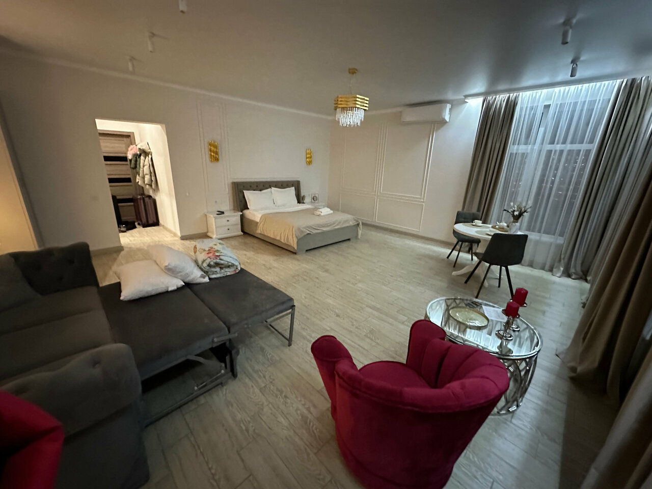 Место красивое, качественная мебель, мы брали номер с окном на потолке, но данное окно открыть оказалось самостоятельно не возможно, нужен специальный человек, который бы его открыл. В общем, с закрытым окном очень душно, пришлось держать открытой входную дверь , наутро проснулись с больными головами. В остальном все отлично было б