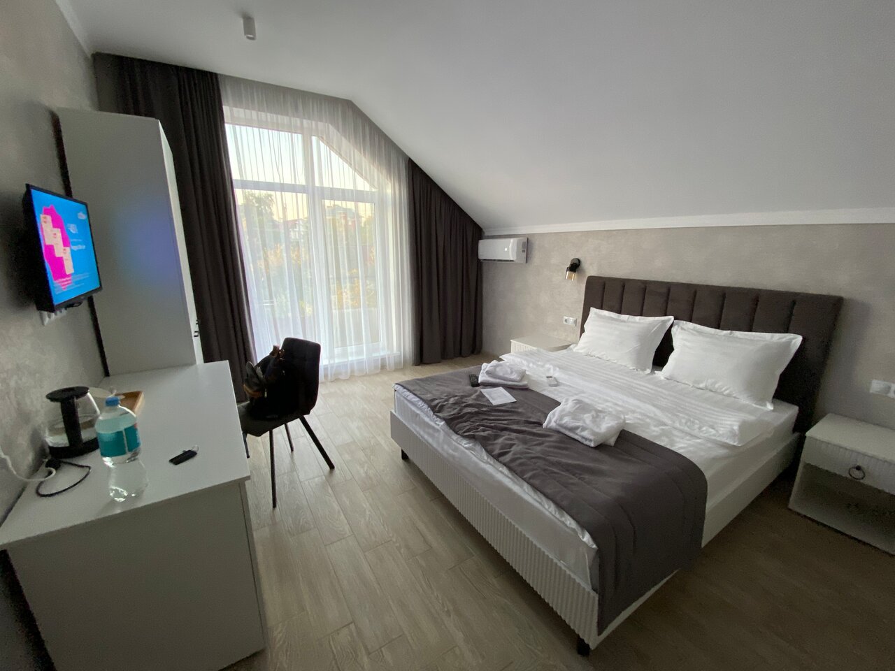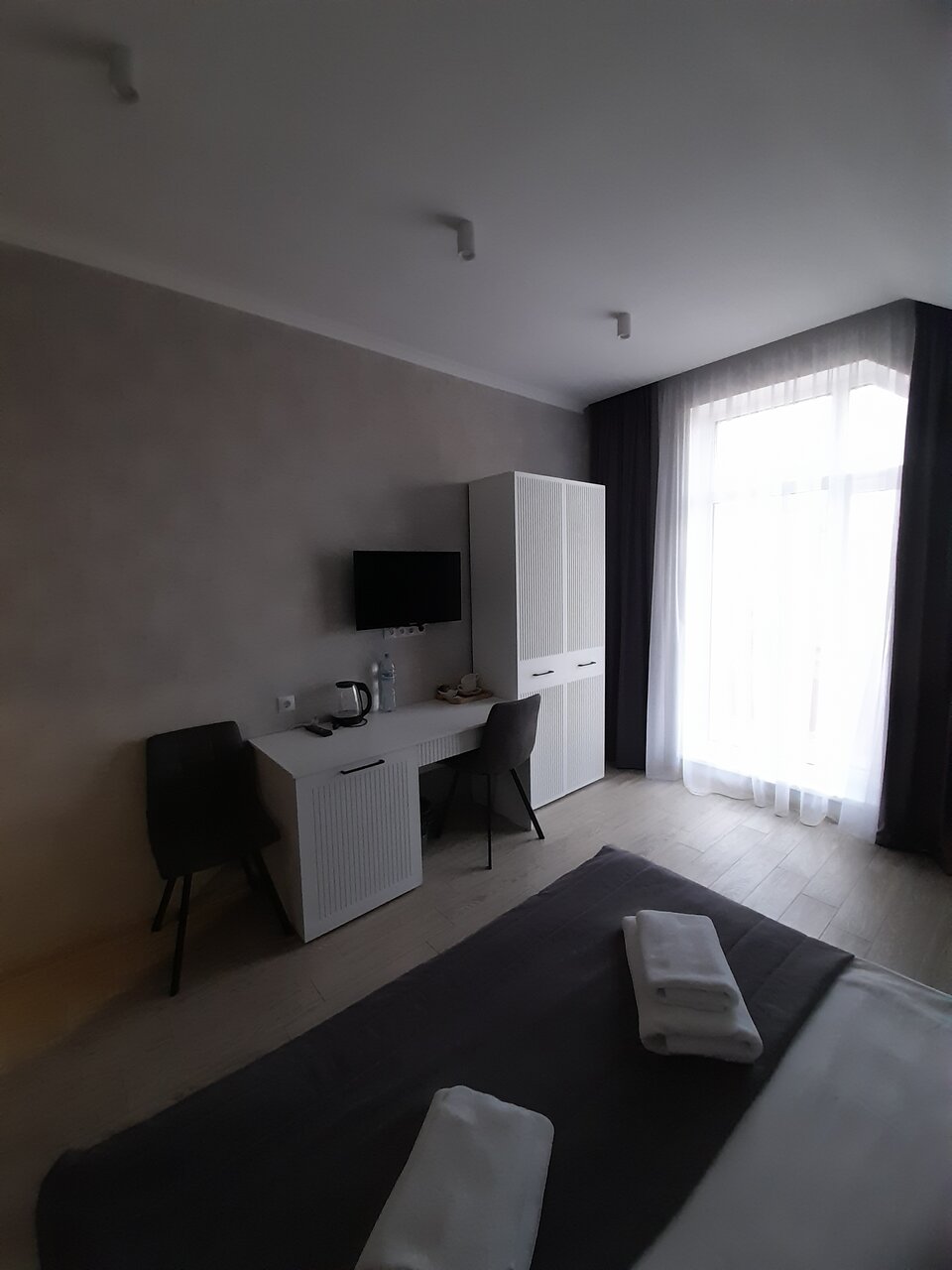 Первые впечатления очень хорошие. Номера чистые и современные. Немного смущают номера на 1 этаже. Окна в пол и на стоянку …. Поэтому обратите внимание при заказе номера. В остальном все супер
