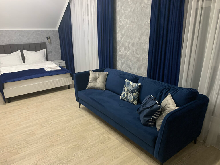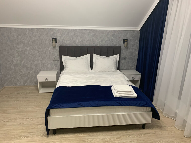 Как по мне это лучшая Гостиница города. Просторные и чистые номера не перегруженные мебелью. Есть спа зона, также можно заказать завтраки и ужин, обед. Персонал на 5. Рядом прогулочная зона выполнен спуск к водоему. На территории гостиницы очень красивый задний двор весь в зелени двор засажен туями, что спасает от глаз гуляющих в прогулочной зоне.