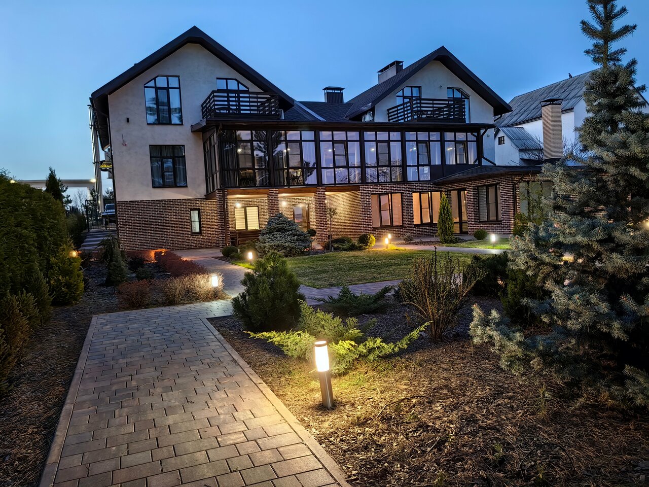 Место отличное. Красивый парк. Уютный уголок, где всё радует глаз. Растения ухоженные, явно видна рука профессионала в дизайне. Всё чисто и аккуратно. Вкусные завтраки. Порции отличные. Внимательный персонал. Баня,хамам и бассейн очень понравились. Мангальная зона — единственное, что немного огорчило, очень нужно, чтобы мангалов было хотя бы три, а то получается, что стоишь в очереди, чтобы пожарить шашлык итп. В целом владельцы молодцы, не пожалели средств на создание красивого и эстетичного заведения. Спасибо. Рекомендую к посещению.
