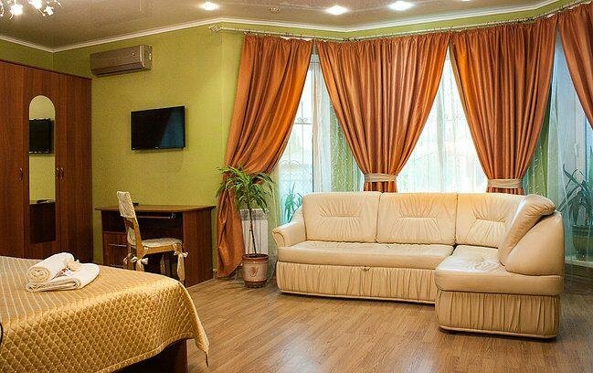 Отличная гостиница! Всегда чисто сухо и тепло. Ванная чистая, просторная и всегда с горячей водой. Уютный большой участок с ландшафтным дизайном, беседками, столиками, скамейками и даже мангальной зоной. Автостоянка на территории гостиничного комплекса. Завтраки готовятся из свежих продуктов на выбор. Ну и конечно огромный плюс это непосредственная близость к парку Горки.