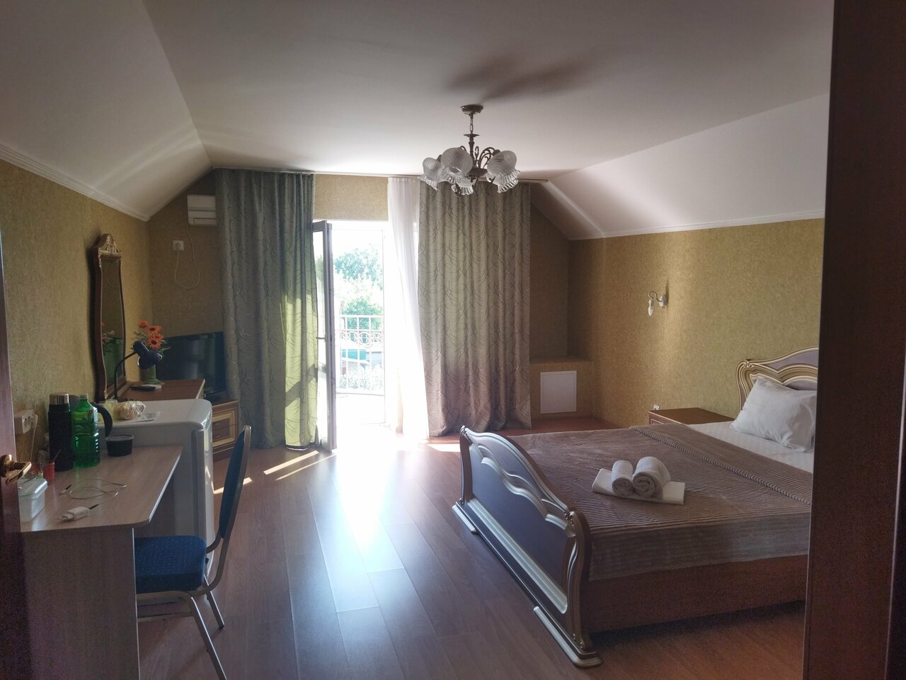 Отель отличный! Домашний и уютный! Рекомендую!!! Чисто, тихо, прекрасная беседка во дворе, где можно посидеть после рабочего дня. Отличный и даже скажу великолепный персонал. Питание хорошее. Расположение тоже доступное. В целом одни плюсы, Минусов — нет. Период проживания с 29.07-08-08.22 Большой плюс — пешая доступность до магазинов, кафе и главное (15 минут) до пляжа РАДОН. Спокойным шагом.