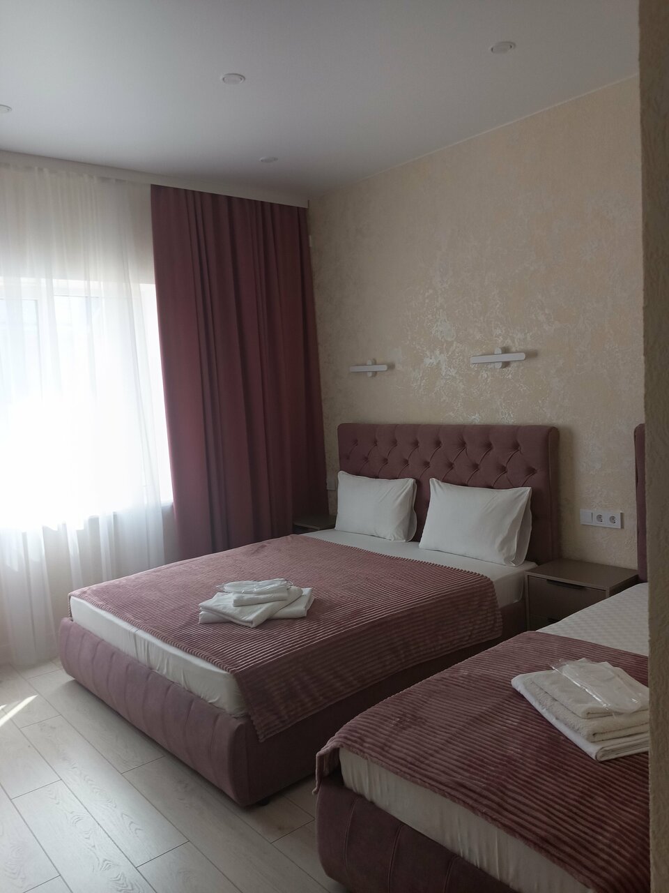 Очень приятный персонал! Встретили поздно ночью, без проблем продлили ещё на один день. По отзывам читала, что чисто. В целом так и кажется на первый взгляд. Однако ковёр у кровати весь в волосах. Завтрак строго в ограниченное время, кажется до 9. Расположение в тихом месте. В целом аккуратно, тапочки и полотенца дают.