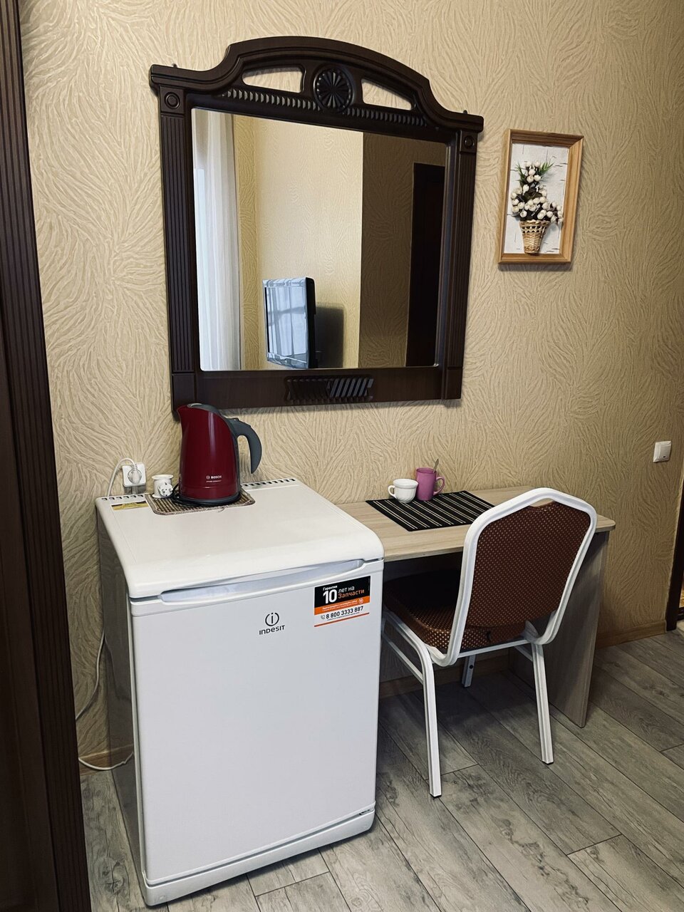 Всё хорошо. В номере ванная, холодильник, эл. чайник. Кулер на первом этаже. Перед отелем есть парковка на несколько машин.