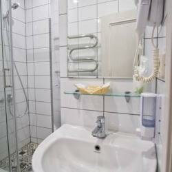 Чистый и аккуратный номер. Остановились на одну ночь. Сама гостиница — небольшой и уютный частный отель. На первом этаже кухня, где можно приготовить или разогреть еду. Есть кофе, чай, сахар, порционные сливки — всем можно пользоваться. Понравилось, что в ванной есть фен, причем достаточно мощный. Также есть гигиенические наборы — шампуни, гели, щетки, пасты, тапочки.
